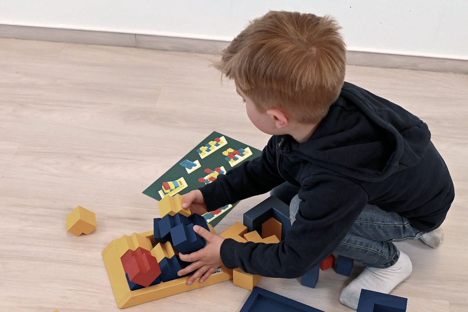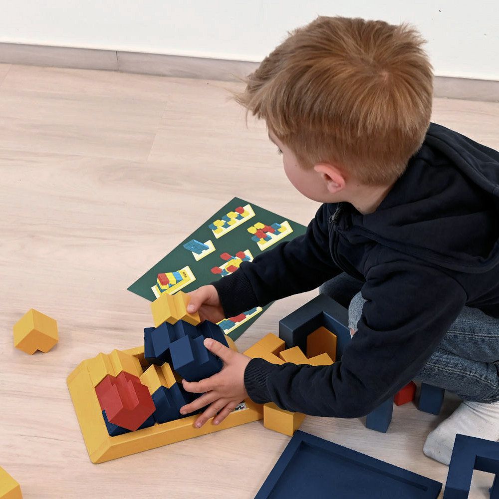 Hochwertiges räumliches Legespiel / Modularix-System mit 18 Bauelementen und einem Gestell aus Ahornholz. Die farbig gewachsten Elemente sind speicheltestgeprüft und gesundheitlich unbedenklich. Ausgezeichnet mit dem Gütesiegel „spiel gut“. Ideal geeignet für den Einsatz in Kita, Hort und Schule, ebenso für den privaten Gebrauch und für Senioren, zur Förderung von Motorik, Konzentration und räumlichem Denken. Hinweis: Die äußere Verpackung ist verschmutzt.