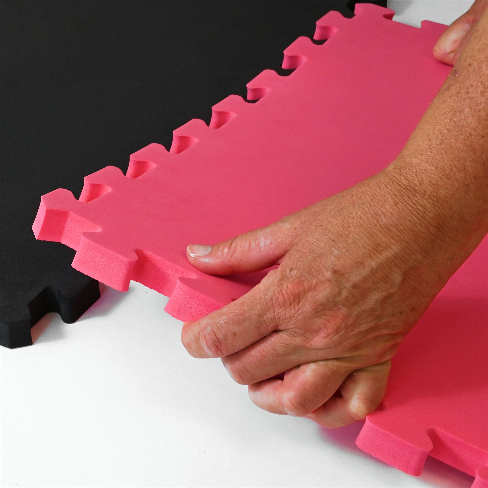 Aufgrund der Rundumverzahnung greifen die Matten perfekt ineinander und es entsteht eine glatte Verbindung. Es können große Flächen puzzleartig und lückenlos gesteckt werden. Dank einer speziellen Fräsung entsteht auf der Oberfläche eine angenehm weiche Haptik. Die strukturierte Unterseite sorgt für optimale Haftungseigenschaften. Die Puzzlematten können dauerhaft im Raum liegen bleiben, sie lassen sich nach Gebrauch aber auch schnell lösen und können zur Lagerung gestapelt werden.