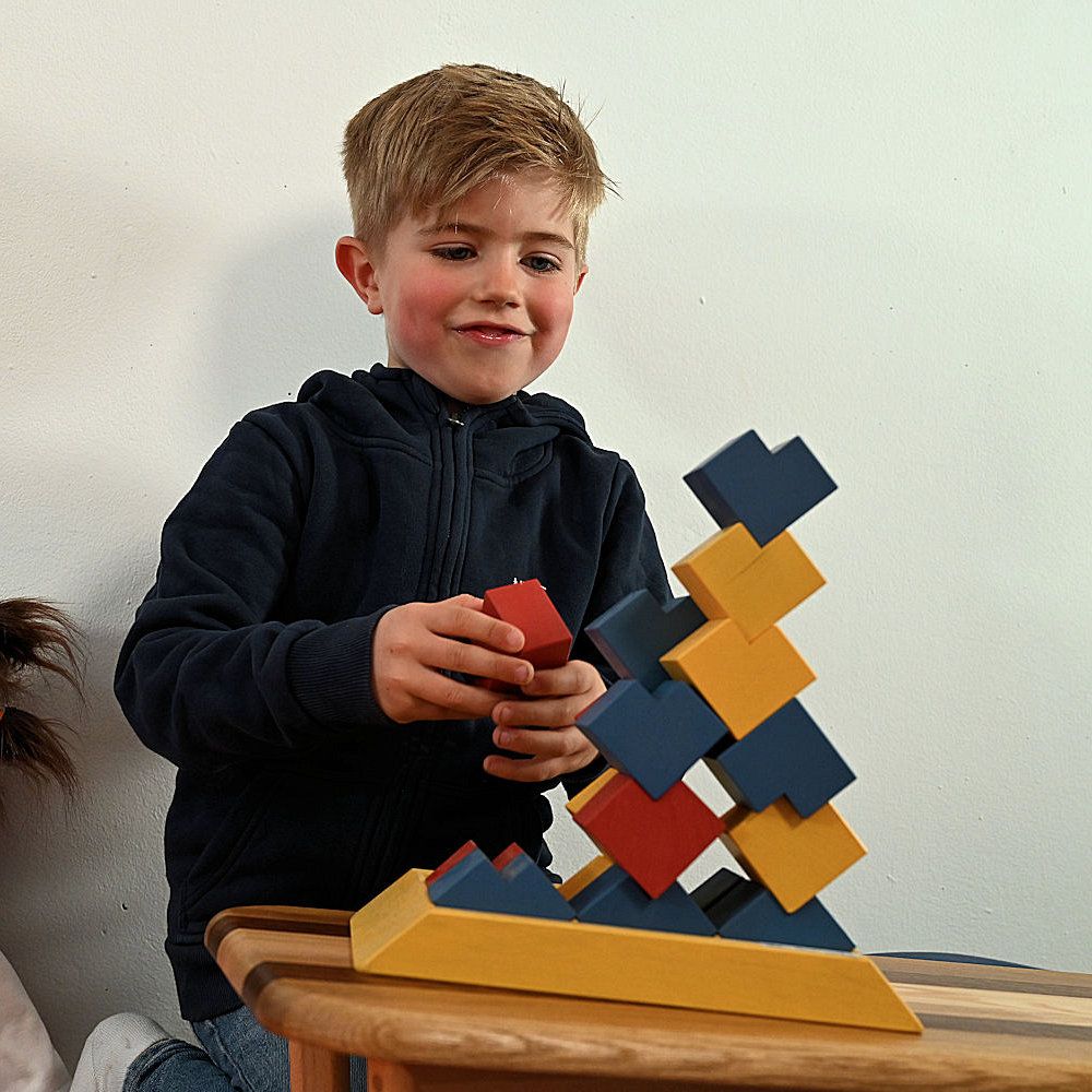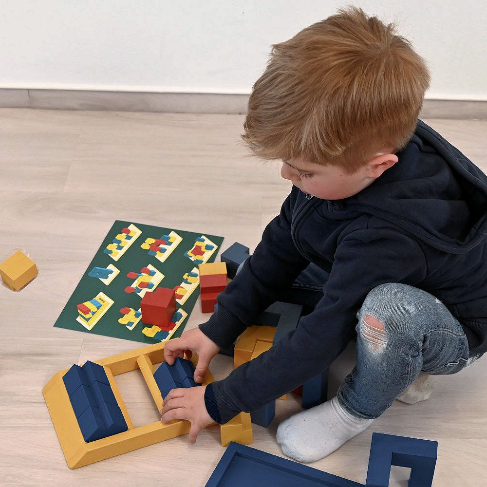 Hochwertiges räumliches Legespiel / Modularix-System mit 18 Bauelementen und einem Gestell aus Ahornholz. Die farbig gewachsten Elemente sind speicheltestgeprüft und gesundheitlich unbedenklich. Ausgezeichnet mit dem Gütesiegel „spiel gut“. Ideal geeignet für den Einsatz in Kita, Hort und Schule, ebenso für den privaten Gebrauch und für Senioren, zur Förderung von Motorik, Konzentration und räumlichem Denken. Hinweis: Die äußere Verpackung ist verschmutzt.