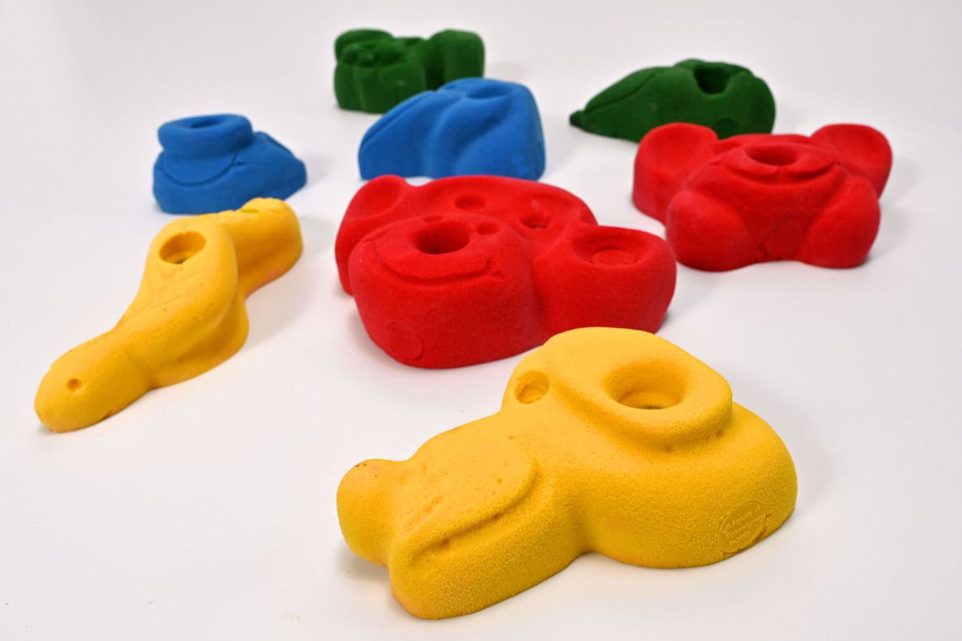 Ein 8-teiliges Klettergriff Set bestehend aus niedlichen Tieren. Bestens geeignet für Kinder und Junggebliebene. Die Klettergriffe ermöglichen dank ihrer Größe kindgerechtes Greifen und schulen die Bewegungskoordination. Dank der ergonomischen Form liegen sie gut in der Hand.