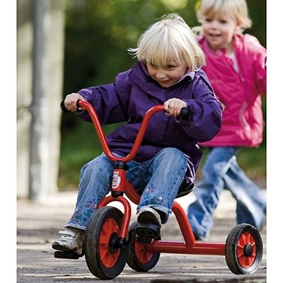 Ein Dreirad für die Allerkleinsten in Kindertagesstätte, Kinderkrippen und zu Hause. Sofort schieben kleine Kinder dieses Dreirad, noch bevor sie lernen, die Pedale zu treten.